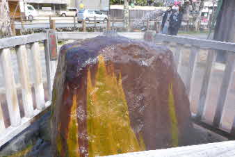 | 和合の樹と呼ばれていて、アカマツとコジイが根元から1本の樹のように合体して成長し、和合の樹と呼ばれるようになったそうであ。現在はコジイの樹が枯れてアカマツの幹にわずかについているような感じだ。 |