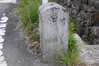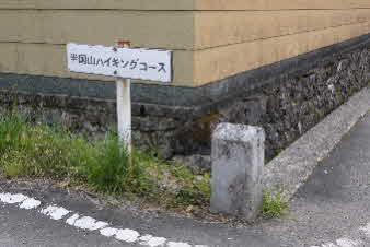 | 赤熊BSを出発、最初の辻に半国山ハイキングコースの看板が立っている。そして、角に道路元標も建っていた。道路元標は、東本梅町の元標で町の道路がここからあちこちにつながっていたのだろう。 |