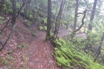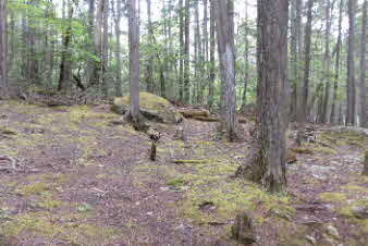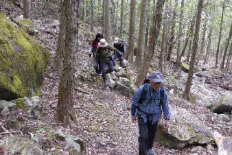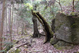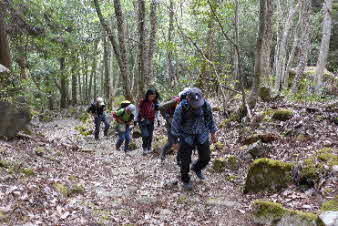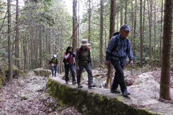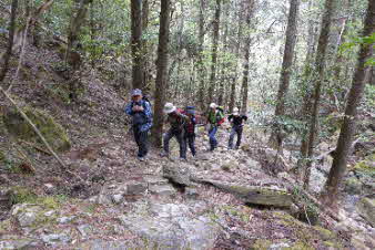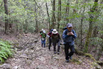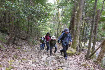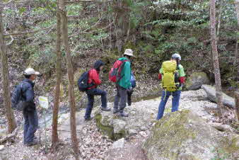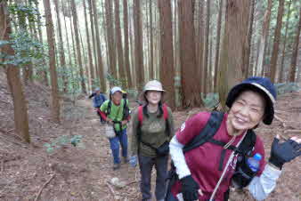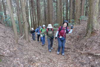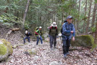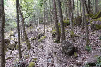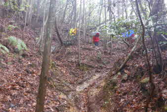 宮川への下りは、緩やかな道で雑木林が美しく感じたり、急な転げそうな急坂を何度も繰り返しながら下った。1時間あまり歩くのがいやになる感じで我慢我慢で下った。天気が良ければ所々で景色も見られ、美しい林も見れるのだがそんな気がおきない下りだ。