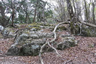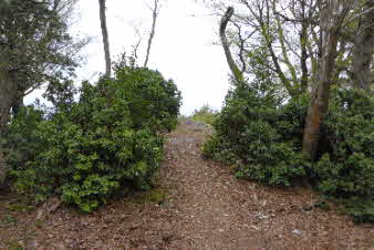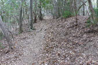 金輪寺手前でピークを登り返し、少し下ると開墾中の場所に着く。神尾山城址だそうで木々を切り倒して公園化しようとしているようだ。 |