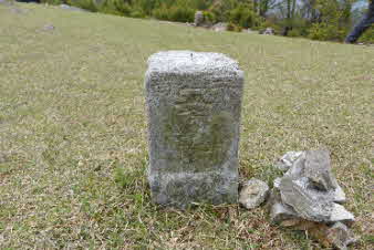 半国山は、標高774mで二等三角点になっている。山頂は広く、三角点の先に山名看板そして奥に岩があり、磨崖碑になっている。