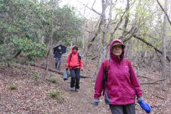 定刻に来た亀岡行きのバスに乗り、亀岡駅へ無事到着。今日は午後小雨の中、カッパを着ての行動で元気が出なかった。次回の例会は好天でありますように。