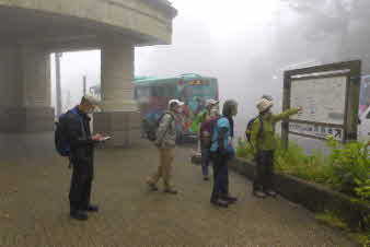 六甲ケーブルにて山上駅へ、山上駅近くになるにつれものすごい濃霧だ。4、50メートル先はグレーで何も見えない。そんな中高山植物園へと歩き始めた。