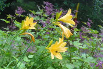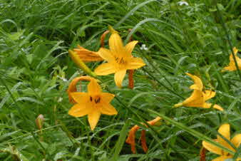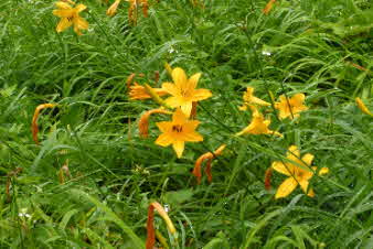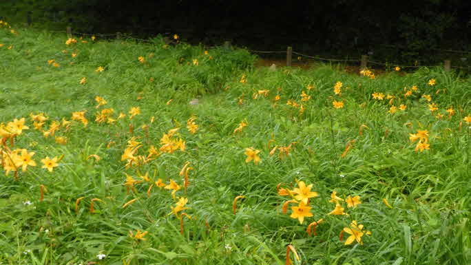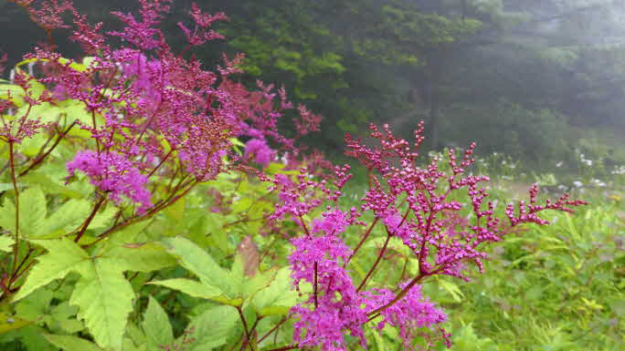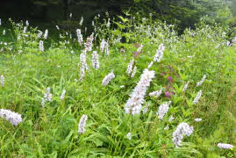 イブキトラノオとシモツケソウが一面に咲いていた。またニッコウキスゲも今が盛りと咲見戯れていた。