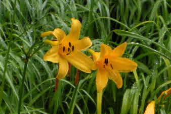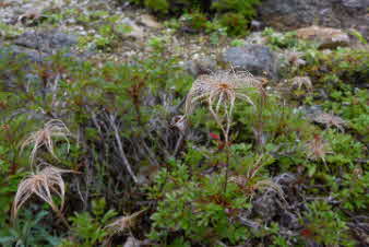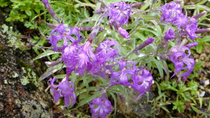 タカネナデシコもたくさん咲いていたが、雨露で押しつぶされた感じで、上に伸びるナデシコでなく少し残念だった。 |