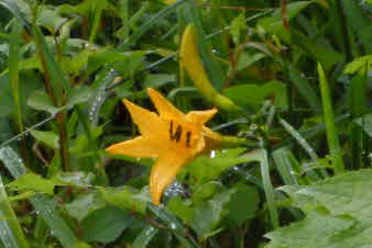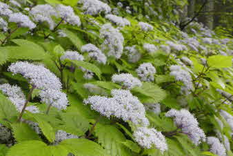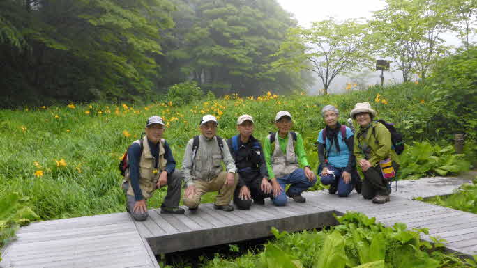 | 植物園に入ると、コアジサイ、シモツケソウ、ニッコウキスゲなどが目に飛び込んでくる。とにかく、山側の鑑賞路を進んでいく。立ち止まってお花を見たり写真を撮ったりと、普通のハイキングとは違う行動だ。 |