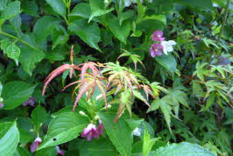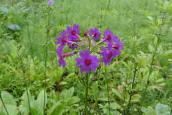 | 今シーズン最後の、ヒマラヤの青いケシが見られるかが楽しみだったが、青色ではなく赤と紫のプリムラ・ビアリーに占領されているような雰囲気だ。やっぱり遅かったか! |