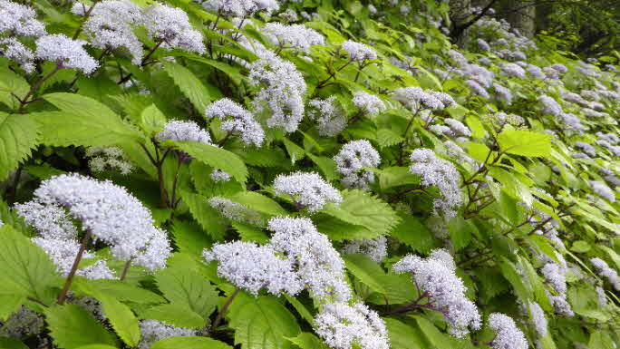 コアジサイがちょうど見頃で、普通のアジサイとは一見違った繊細さがあり目を楽しませてくれる。高山植物の女王、コマクサが咲いていたがちょっと離れていて近くでは見られなかった。