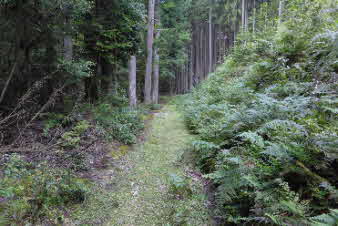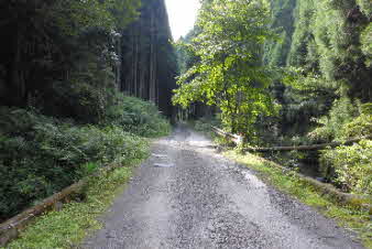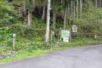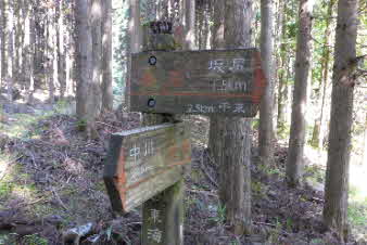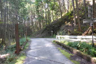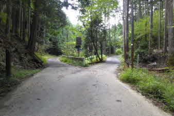 | 上ノ水峠に迂回してやっと到着。松茸シーズンの通行止めの看板があるが、土地勘のないものは、どうすれば良いか判断できない。ここから少し急な道を坂尻までひたすら下って行く。 |