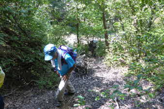 沢ノ池分岐(13:46)~上ノ水峠(13:55)~坂尻(14:13/14:21)~急坂(14:46)~ 千束~