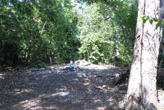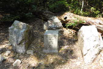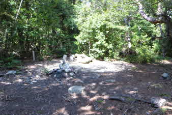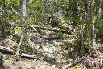 | 倒木をかき分けやっと山頂の沢山に到着。沢山は、標高516mで二等三角点になっている。山頂は小さな広場になっているが展望は木々でおおわれ望めない。 |