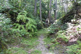 | 崖崩れの反対側道を進む、道は綠の絨毯のようなで気持ちが良い。沢ノ池への道に合流し、沢ノ池分岐まで戻る。ここから塩尻方面へと登り返して行く。 |
