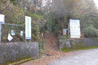 あたご分岐で道路元標を見て、明智越えの案内に沿って集落を登っていく。登り切ったところが明智越えの入口だ。