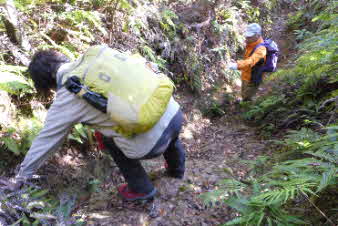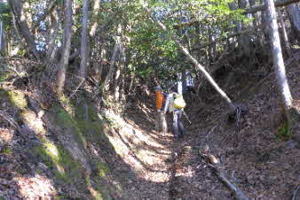 登り始めると次第に道は急登になってくる。こんなところを明智光秀は歩いて登ったのか、馬に跨がって登ったのか?どうだったのだろうか? |