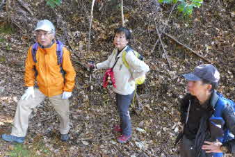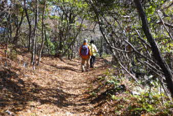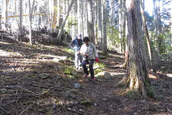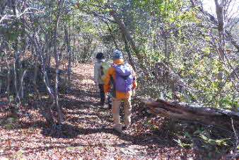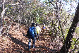尾根道で日当たりの良いところで小休止。小春日和でこんな時期に尾根道で、ひなたぼっこは至福の一時だ。