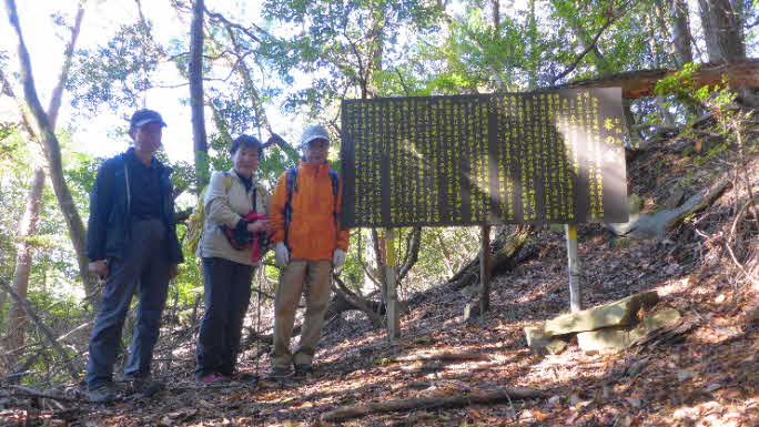 登山口から急な坂道を約50分登り、やっと峯の堂に到着した。登山口から標高差240mほどを頑張った。峯ノ堂は、「むねんどう」と読むのだそうだが?