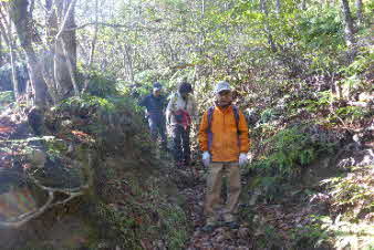 登山口(9:27)〜峯の堂説明板(10:19)〜土用の霊泉(10:45)〜明神峠分岐(10:58)〜