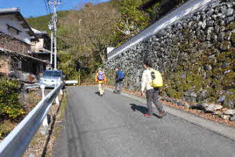 ここから柚子の里水尾へと、登っていく。爪先上がりの道路で最後の〆にはかなり厳しい。登り切ると、水尾の集落になる。 |