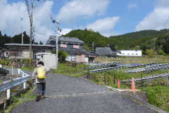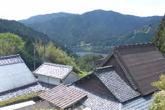 集落に入り10分余り下って行く。途中集落の屋根の間にまほろば湖が見えてくる。高おがみ神社に到着、お参りしてさらに下って行く。