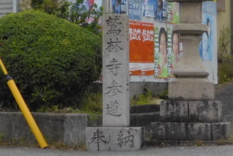 鷲林寺参道の標石にしたがって広い道を登っていく。左前方に黄色の杭が立っていて車の侵入止めになっている。ここから参道であまりきれいな道ではないが登っていく。