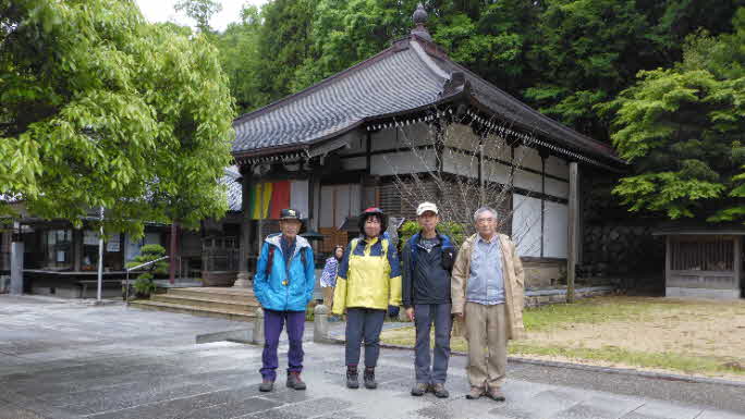 | 本堂前で記念写真を撮り、しばらく境内を廻り。荒神堂にお参りする。そろそろ龍王さんも静かに寝起きされたと思うので、観音山へと登り始めることにした。 |