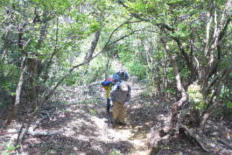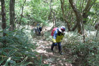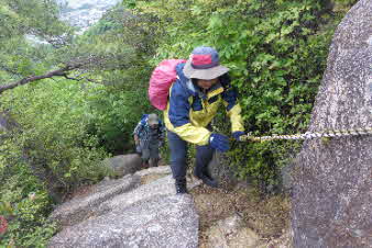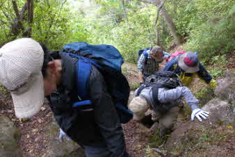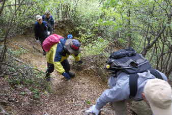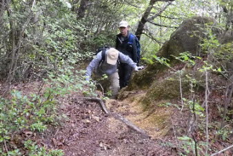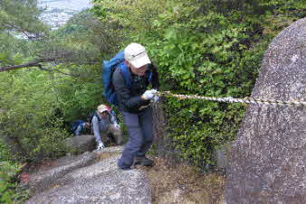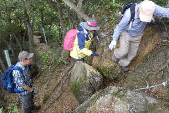 観音山へ 岩場が続く |
