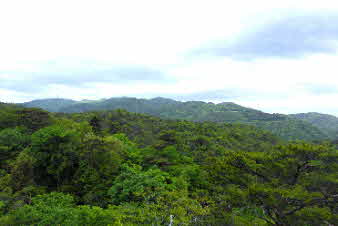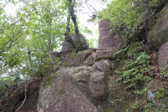 カベノ城 展望岩より (木が茂って全体は見えない)