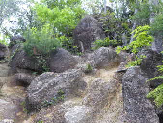 観音山へ 岩の道が続く |