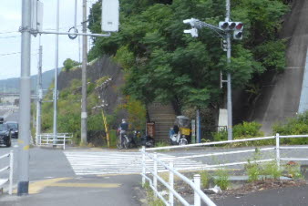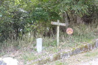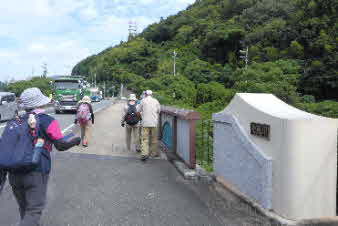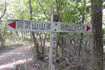 阿武山口バス停から萩谷総合公園へと歩いて行く。幸い先ほどの強い陽射しが少し和らぎ、少しは楽だ。途中、武士自然歩道の分岐を通過して先へ進んでいく。後から萩谷総合公園行きのバスが通過していった。