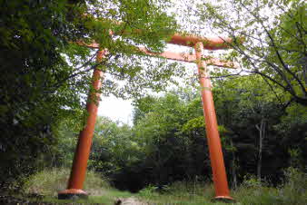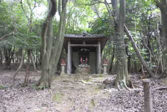 阿武山稲荷の祠は小さく、大きな鳥居と似合わない感じだ。その昔、阿武山稲荷の社殿は、大鳥居と共に大きな立派なものだったそうだ。 |
