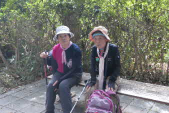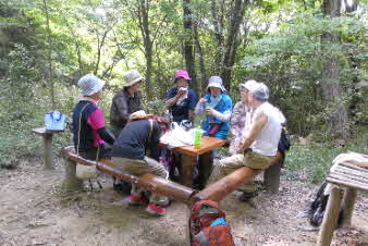 広場には、市民か山中間が作ったと思われる、ベンチやテーブルがあり、寛ぎの場になっている。さっそく我々もベンチに座って昼食にした。高山には見られない低山の魅力だろう。