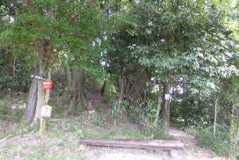 | 少し先に進むと、広場になっていてベンチなどがあり、広場になっている。このあたりから茨木市街から大阪の町並みなどが展望できる。広場には、大きなえのきがあり、ご神木になっている。 |