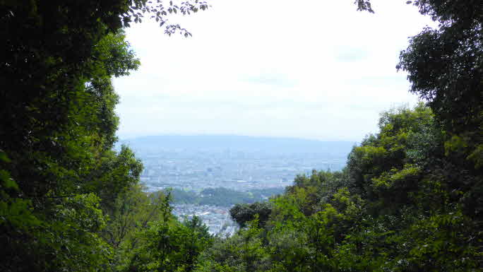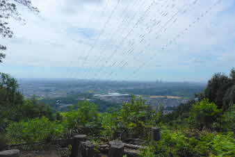 山頂の一部から少し開けた窓があり、高槻市街が展望できる。ゆっくり寛いで尾根を少し先に進むと、送電線鉄塔があり、展望台になっている。大阪平野が広がり、アベノハルカスなどが望める。 |