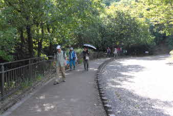 萩谷総合公園に到着、先ほどのバスは時間待ちで停車している。我々もベンチに座って少し休憩した。バスは、乗客なしで出発しいていった。我々は、元気で歩いて摂津峡まで行こう。 |