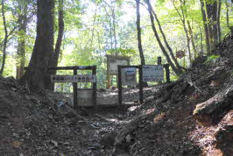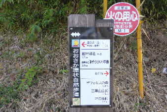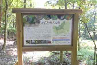 ゼフィルスの森の小さな広場と温室があるところを通り抜けると、登山口に無事到着した。登山口は開けていてゼフィルスの森の案内板がある。「森の妖精、蝶の舞う 三草山ゼフィルスの森」の説明があった。