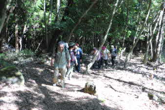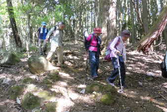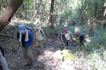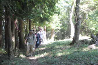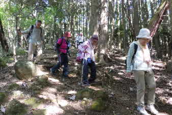 山頂で昼食をとり寛いで、才ノ神峠と下った。尾根道は所々急なところもあるが比較的いいコースだ。 |
