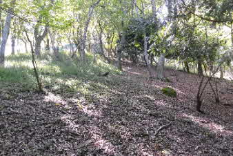 | そんな道を登り切ると、ゼフィルスの森のゲートになっている。新緑の頃は、若緑で素晴らしい森を体感したが、今回は今少しの景色で蝶の気配は見られなかった。 |