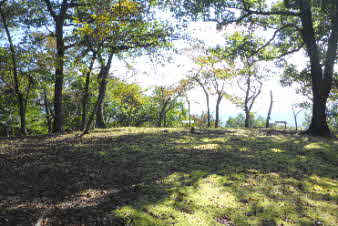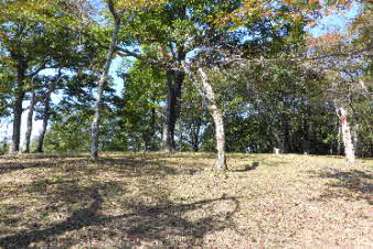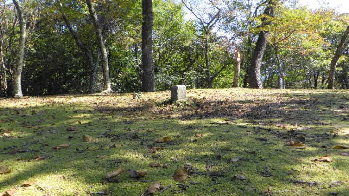三草山は標高564mで三等三角点になっている。山頂は天国の広場のようで、秋らしい黄緑の絨毯が敷き詰められているような感じだ。