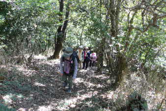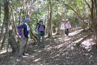 | そんなゼフィルスの森を左手に見ながら、三草山へと登っていく。今までより、傾斜は急になり登山が実感できる。最後の急登を頑張って登ると三草山の山頂だ。 |