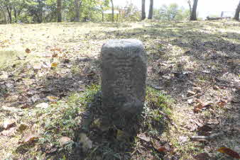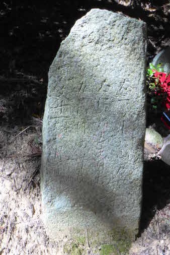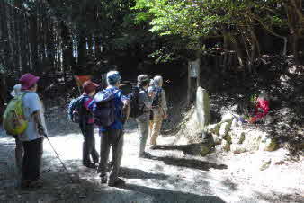 | 才ノ神峠まで下ってきた。古い石の道標が建っていて道案内している。「右二筋は山道 長谷村」「谷は銀山 有馬」「左は池田道」と記されているようだ。この道標は、多田銀銅山の最盛期の頃建てられ交通の要所となっていたそうだ。現在の国土地理院の地図でも7、8本の道がタコの足のように記されている。 |