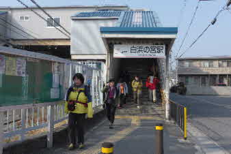 白浜の駅に10時16分到着したが、1名は未着だ。浜の宮で下車したそうだ。「白浜の宮」と「浜の宮」を間違えたようだ。1名の到着を待って10時50分出発。 |