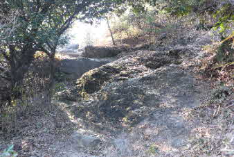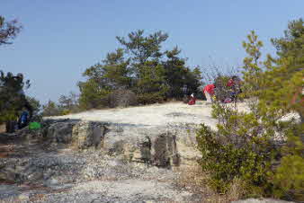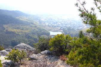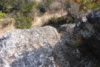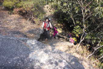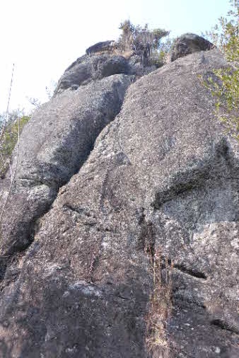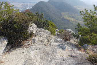 | 行場を巻いて上がり、上に立つと結構厳し景色になり、足がすくわれる感じがする。行場の上から下を覗いて「こわ~」て感じだ。 |