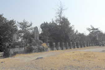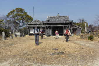 | 小富士山の山頂の北側で広々しており、華厳寺がある。お寺の前は広く、お寺の周囲を取り巻くように石仏が並んでいる。 |