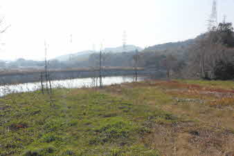 林道を少し下るとゲートがあり、仁寿山校跡碑が建っている。その横に説明板があった。その先右下に西池があった。 |
