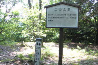 七合目、八合目そして九合目と登っていく。もうすぐ本丸跡、元気を出して少し急な道を登っていく。二ノ丸跡に到着した。
