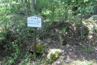本丸跡から東へ少し下ったところに、岩がある。「光秀勝ちどき岩」と記されている。八木城を攻め落とした明智光秀がこの岩で勝ちどきをあげたそうだ。 |