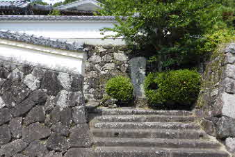 八木城址は、内藤備前守屋敷跡で、南北18m、東西25mで石垣、土塁が周囲を囲んでいる。城郭は持たず門の上に櫓を挙げて防備したそうだ。 |