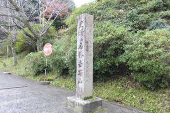 坂道の途中、黒門をくぐる。黒門は、金峯山寺の総門で、吉野山の総門でもあるそうだ。その先に、「史跡及名勝吉野山」の碑が建っている。 |