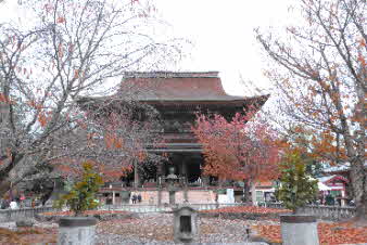 さらに進むと突き当りが金峰山寺だが、正面の仁王門が修復工事中で、左側から巻いて登っていく。大きなお堂があり、金峯山寺蔵王堂に到着する。