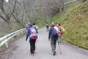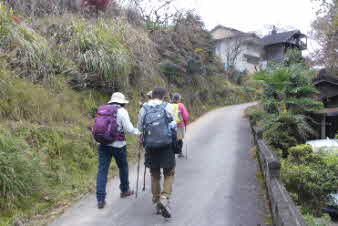 | 竹林院を過ぎると、坂道も次第に急になってくる。地道の登山道に慣れていて、アスファルトの舗装道路を登るのはかなり厳しい。 |